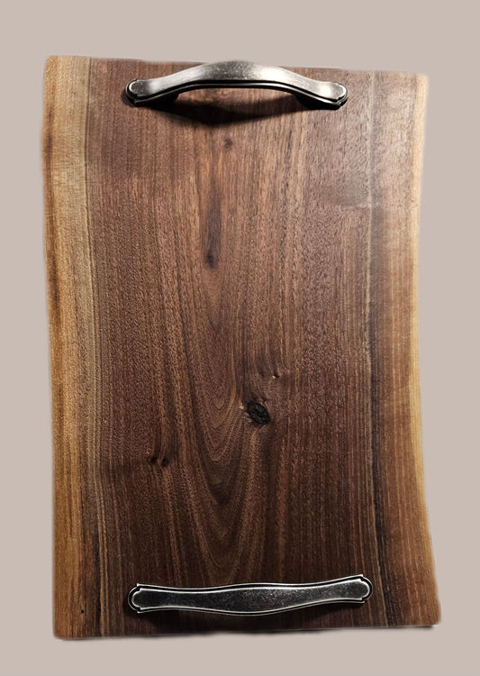 C. Walnut charcuterie board with handles, live edge