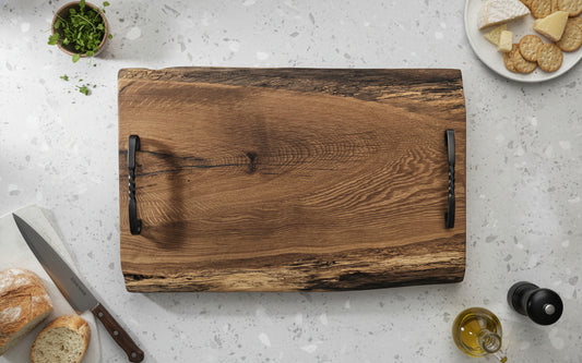 C. Walnut charcuterie board with handles, live edge